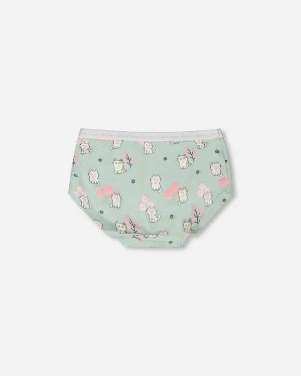 This boyshort panty brings a fresh and playful touch with its charming green kitten print. Designed with a comfy elastic waistband and a snug yet gentle fit, this underwear ensures ease of movement all day long. Made with soft organic cotton and a hint of stretch