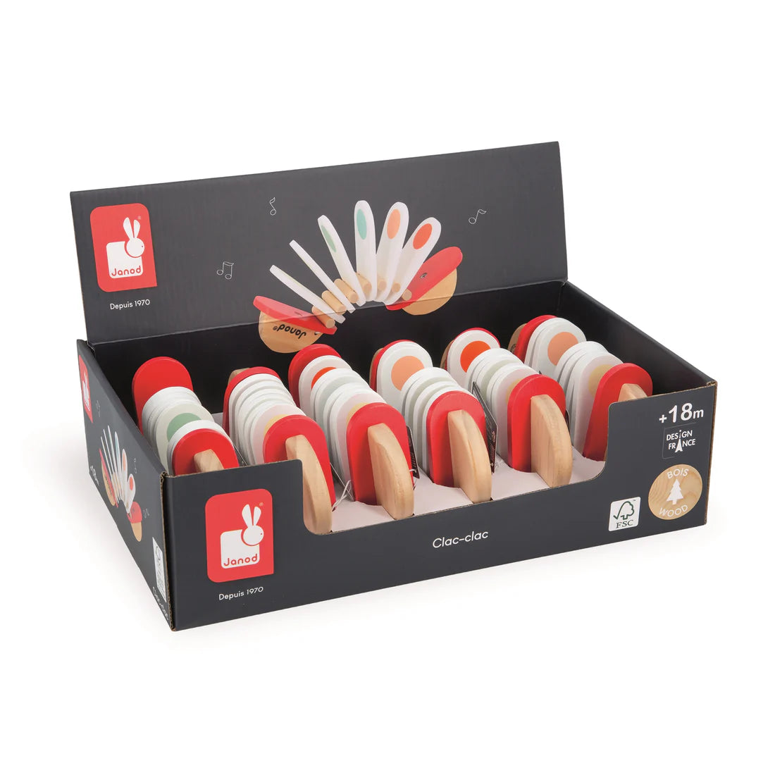 Tap, shake, and clap along! The Janod Confetti Clack Clack is a fun, colorful wooden musical toy that invites little ones to explore rhythm and sound. Its bright confetti design and easy-to-grip handles make it perfect for tiny hands, encouraging active play and musical discovery.