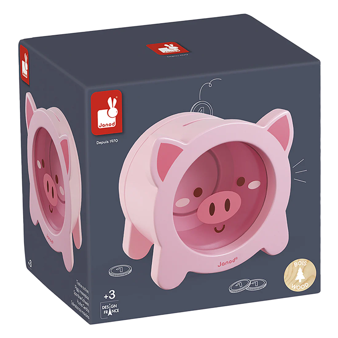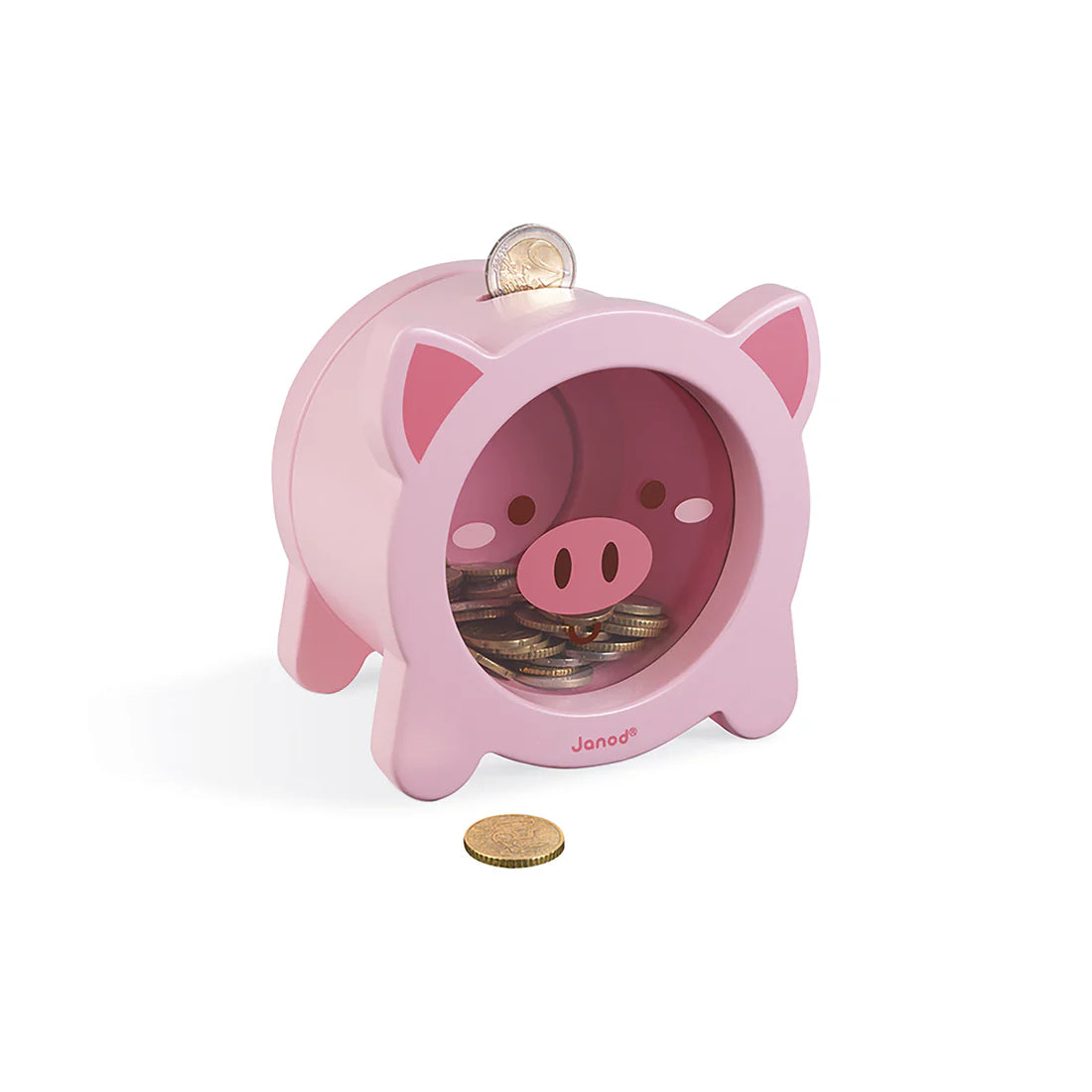 This little pig is a pretty wooden piggy bank that will help your child keeping his coins and banknotes throughout the year. Your child can then see his savings through the transparent section at the front. And it will be easy to get them back thanks to the magnetic opening located at the back of the animal. It will be a real pleasure to save money!