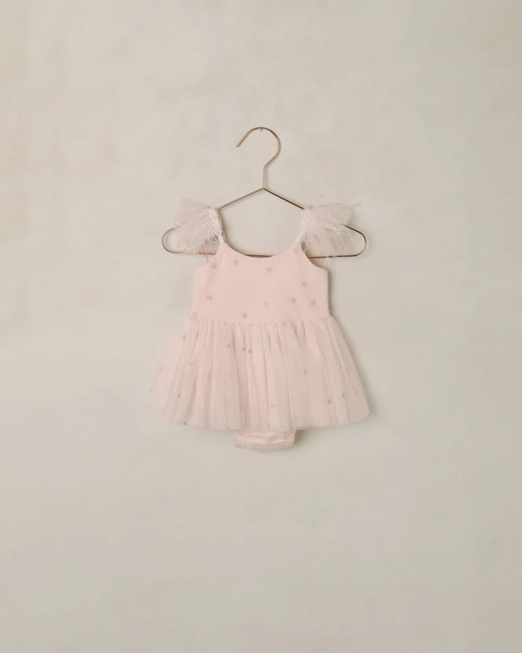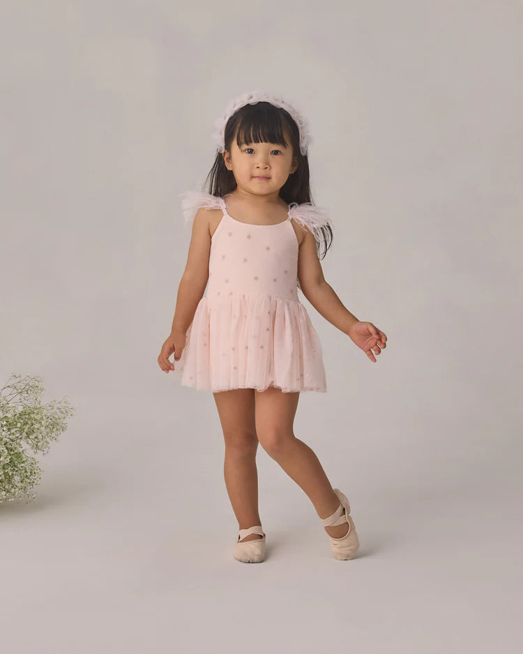 Whimsical and playful, our Poppy Tutu features flower embroidered tulle and beautiful feathered sleeves. Designed with a smocked back bodice, a soft jersey liner, and adjustable straps for comfort and easy wear. Bottom snaps included in sizes 3M - 4Y.
