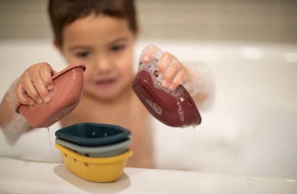 Float, scoop, and sift with the noüka Silicone Stacking Boats during bath time and water play. Five floating boats feature holes at the top for scooping and sifting water or sand. Easily stackable for storage and encourages fine motor skill development. Made from soft and flexible food grade silicone, our floating boats are easy to clean, durable, and long-lasting. These Silicone Stacking Boats are available in an array of calming, modern colors for your little one.