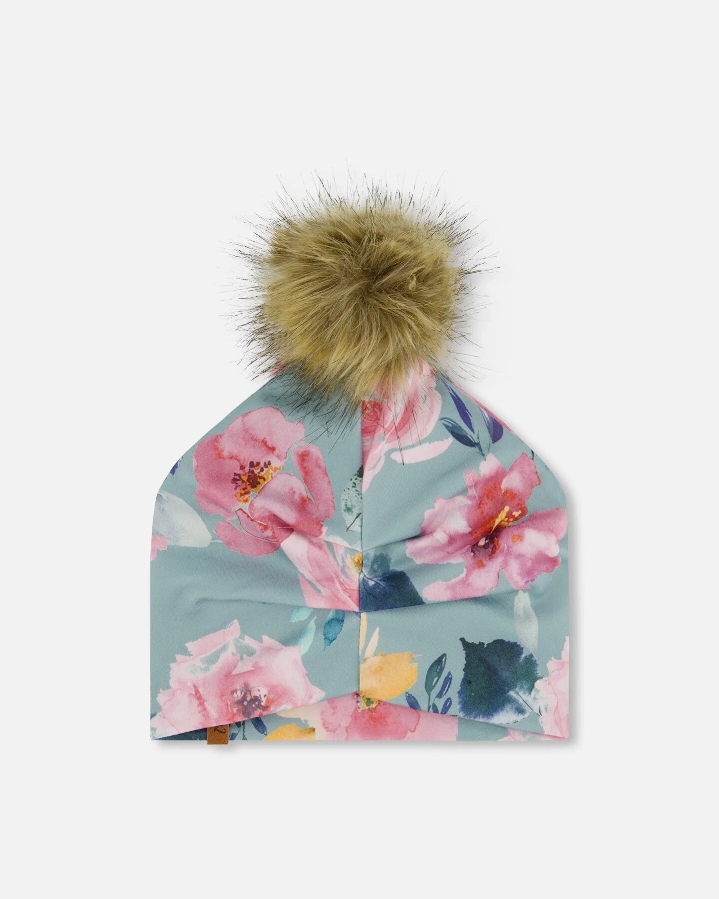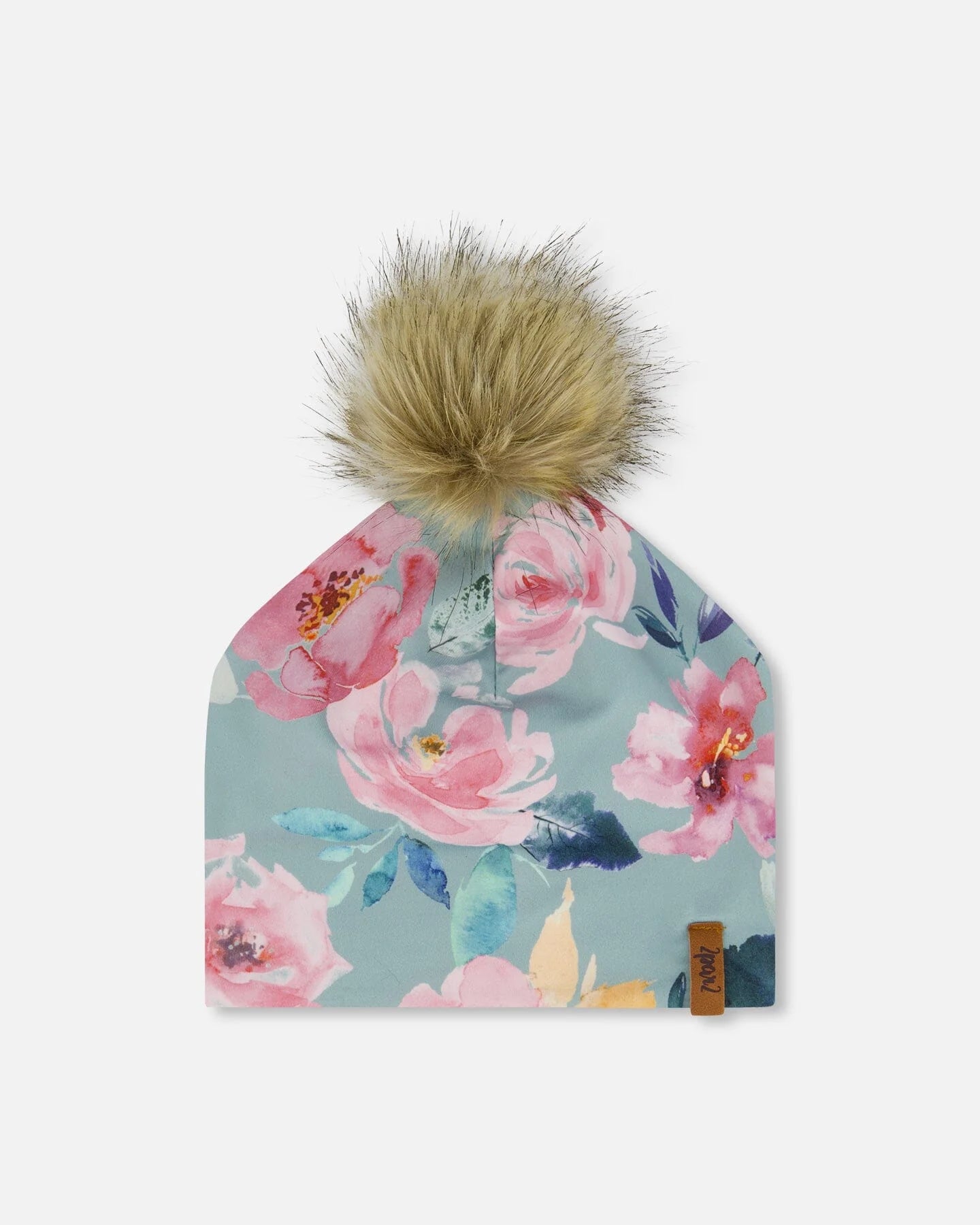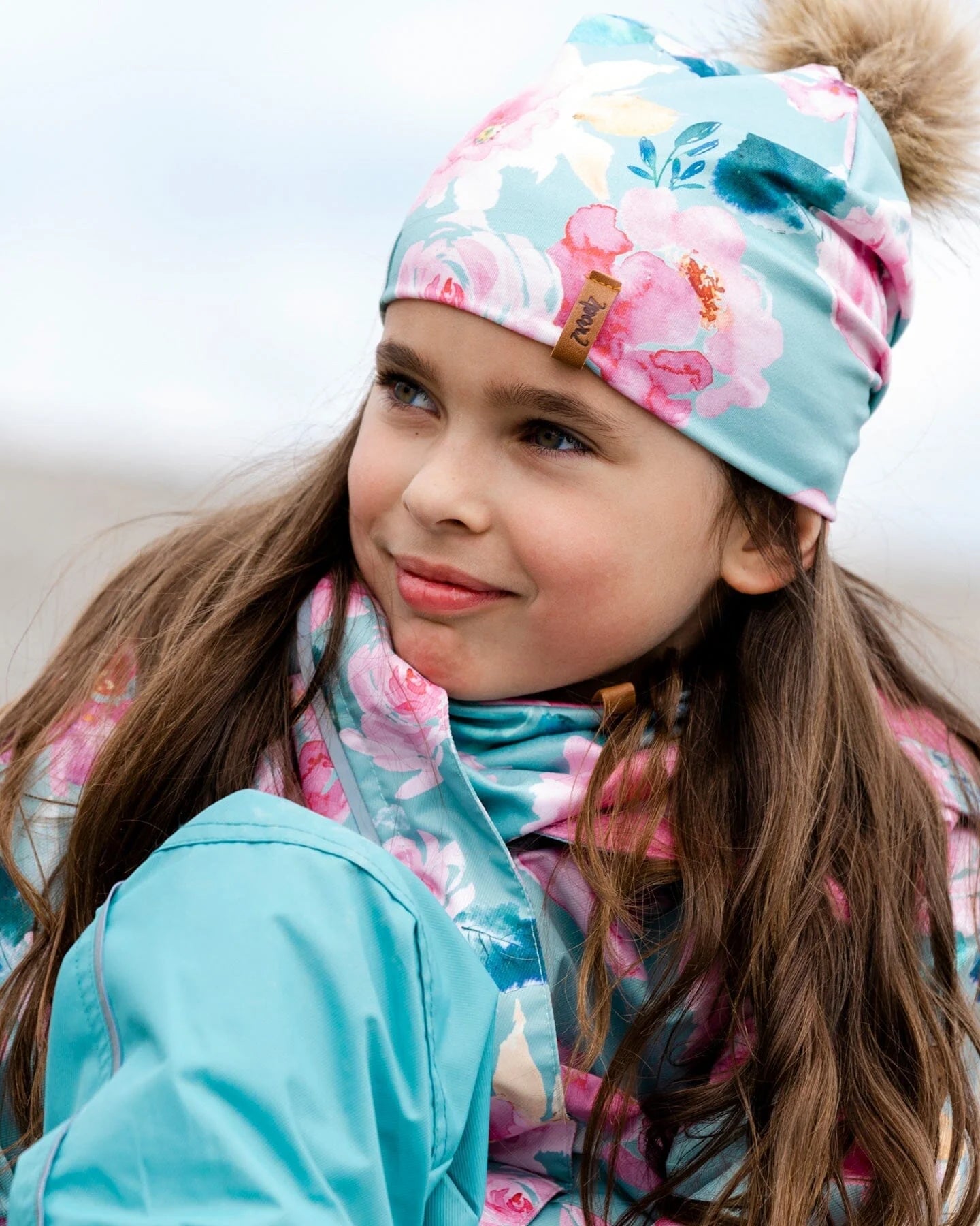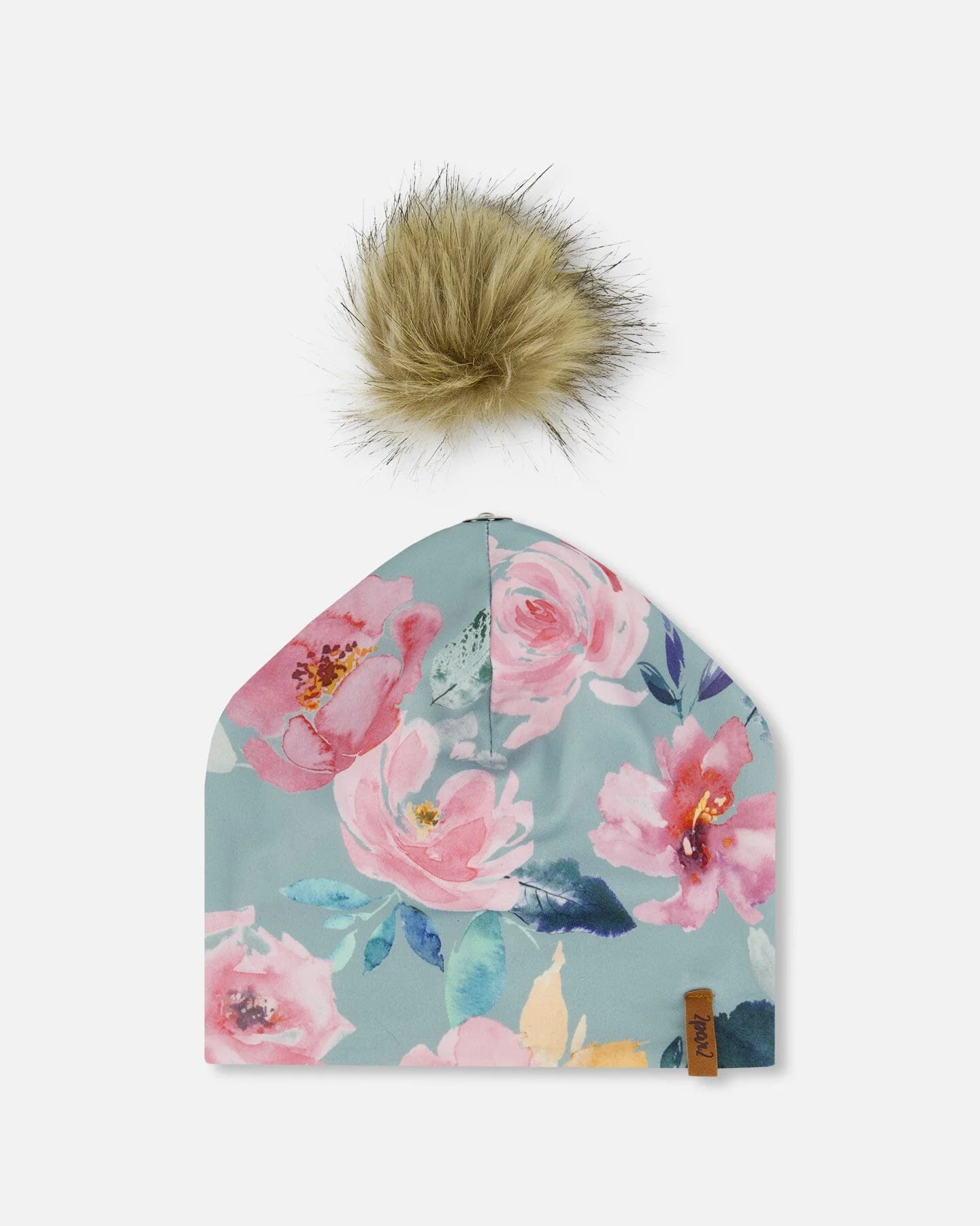Deux Par Deux Detachable Pompom Hat - Watercolor Roses