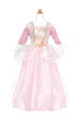 Our golden rose princess dress was such a success that we are now introducing a pink rose princess dress! This dress is accented with gold trim, shimmering organza, and two layers of tulle over top of the pink satin hoop skirt. The sleeves and bodice are made of soft crushed stretch velour - the velour has spandex for comfort and size flexibility. This dress is every princess’s dream!
