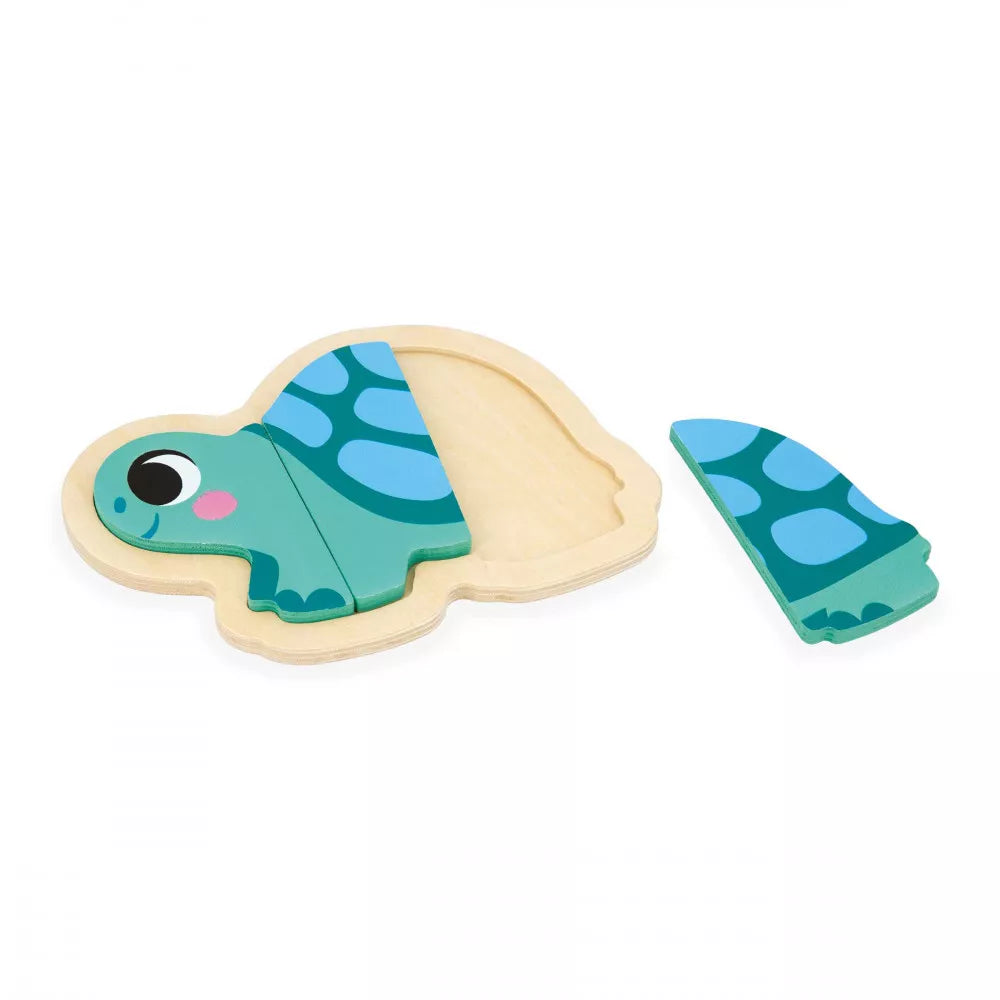 From the age of 18 months, children can begin to learn about the joys of puzzles! Perfect for developing fine motor skills and coordination! This set of 4 early-learning progressive puzzles will delight little ones who love nature and the creatures living in their garden! With this wooden puzzle set - presented in a pretty gift box - which contains 4 puzzles, ranging from 2 to 5 pieces, children can have fun whilst progressing at their own pace. Featuring little ones’ favourite animals: a 2-piece snail, a 3-piece tortoise, a 4-piece rabbit and a 5-piece butterfly. The pieces - which must be put back in the right order on the wooden stand - have been designed for babies to grasp onto them well. This early-learning game will be a true pleasure to play! This toy can also be used to prompt children to learn their first numbers. The puzzles are made from FSC® wood.