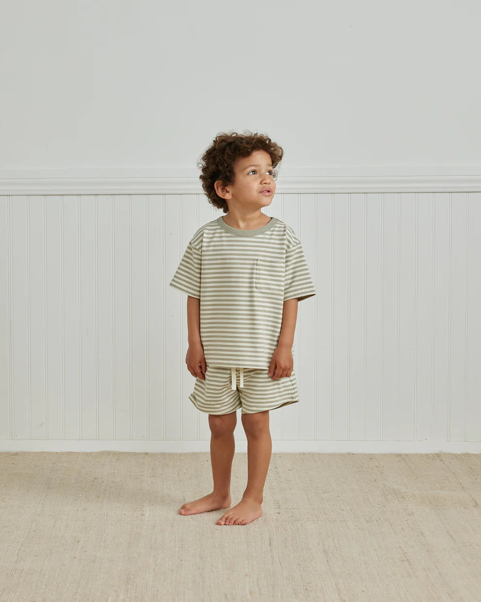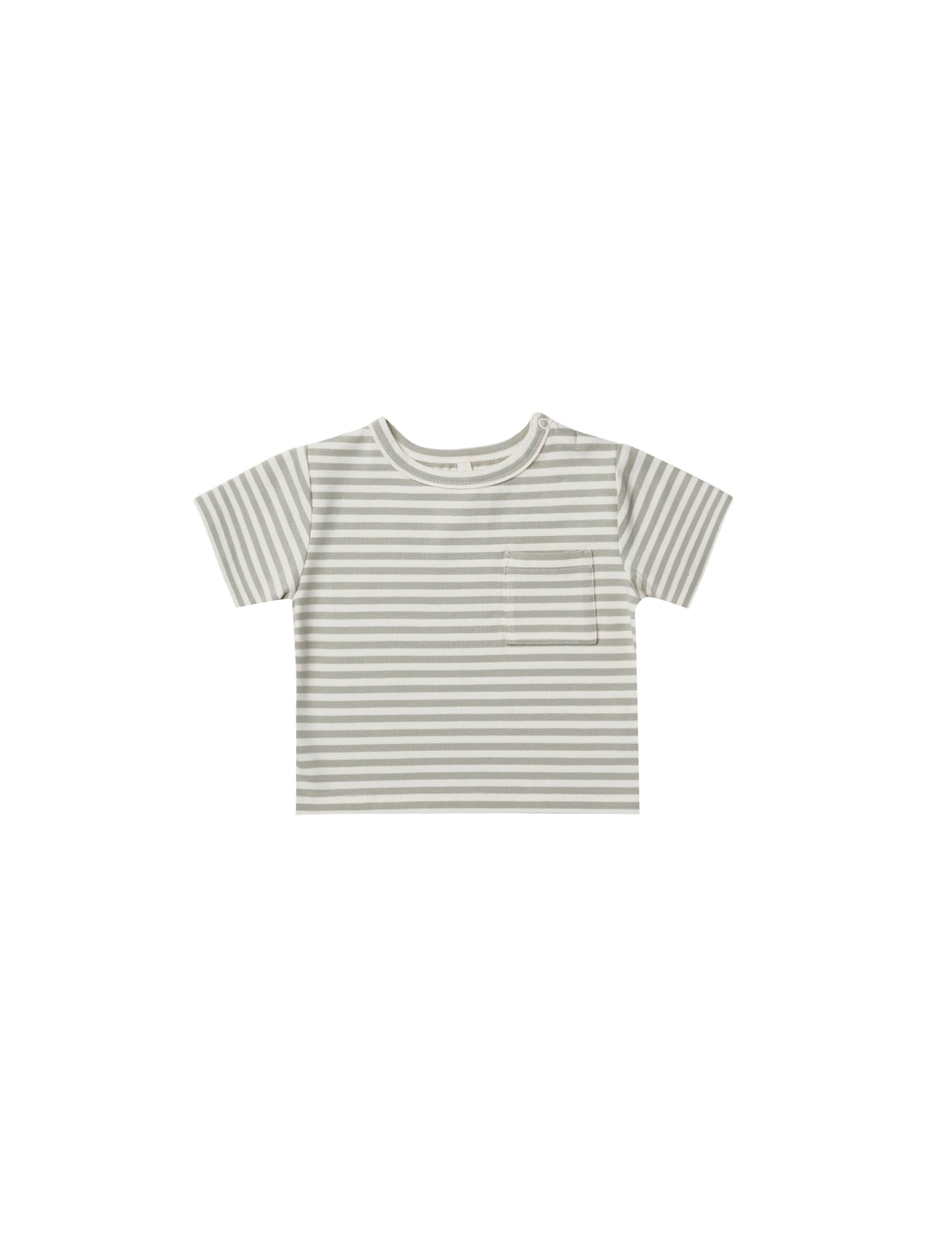 Quincy Mae Boxy Pocket Tee - Pistachio Stripe